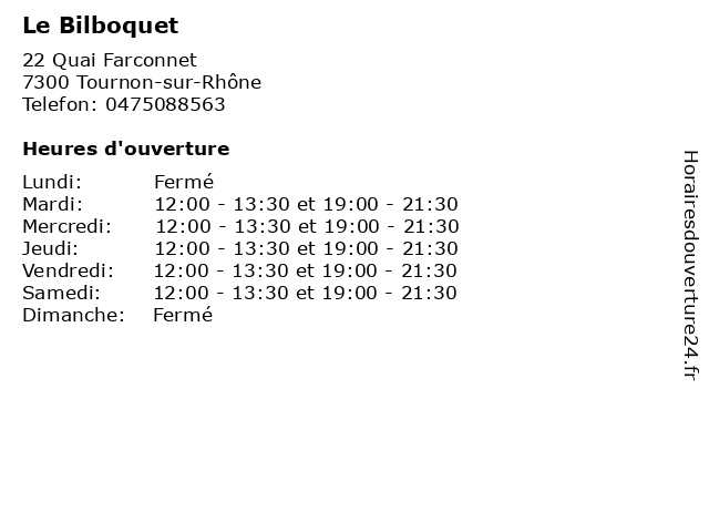 | Samedi | 12:00-13:30 et 19:00-21:30 |