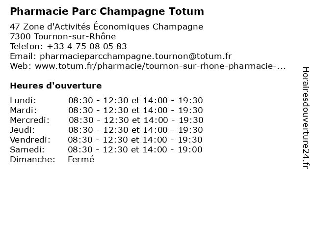 | Lundi | 08:30-12:30 et 14:00-19:30 |