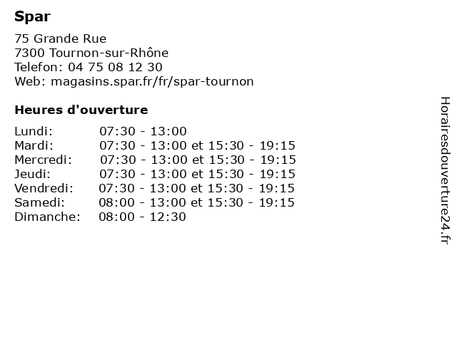 1 Spar (Distance: 0,51 km) - Impasse des Rosiers, 26600 Tain l'Hermitage alimentaire, alimentation, courses, spar, supermarché, supérette, épicerie 2 Spar (Distance: 13,76 km) 48 avenue du 8 mai 1945, 07370 Sarras alimentaire, alimentation, courses, distributeur, spar, supermarché, supérette, épicerie 3 Spar (Distance: 14,09 km) 2 Rue Jean Moulin, 26500 Bourg-lès-Valence alimentation, spar, supemarché, épicerie 4 Spar (Distance: 16,81 km) 7 Avenue Jean Moulin, 26100 Romans-sur-Isère alimentaire, alimentation, courses, spar, supermarché, supérette, épicerie 5 Spar (Distance: 19,56 km) 4 Place Maxime Chantier, 07340 Andance alimentaire, alimentation, courses, distributeur, spar, supermarché, supérette, épicerie 6 Spar (Distance: 23,16 km) 19 Boulevard de l'Europe, 07100 Annonay alimentation, légumes et de fruits, spar, épicerie |