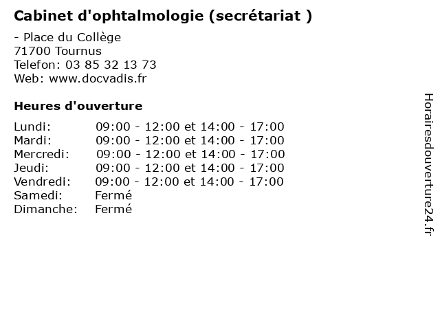 | Mardi | 09:00-12:00 et 14:00-17:00 |