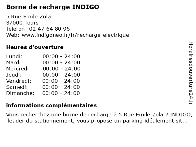 1 Borne de Recharge INDIGO (Distance: 0,41 km) 113 Place Anatole France, 37000 TOURS borne, de, indigo, recharge 2 Borne de recharge INDIGO (Distance: 0,50 km) 12 Place Du Général Leclerc, 37000 Tours borne, de, indigo, recharge 3 4 Borne de Recharge INDIGO (Distance: 1,06 km) Rue Jean-bernard Jacquemin, 37000 TOURS borne, de, indigo, recharge 5 Parking Indigo Tours Nationale (Distance: 0,00 km) 5 Rue Emile Zola, 37000 Tours borne de recharge pour véhicules électriques, indigo, nationale, parking, tours 6 |