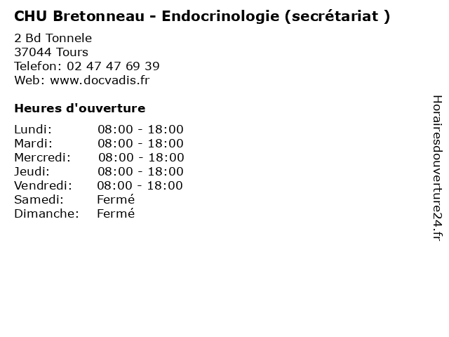 Termes de recherche pour CHU Bretonneau - Endocrinologie (secrétariat ):santé, chu, secretariat, docteur, consultation, bretonneau, endocrinologie |