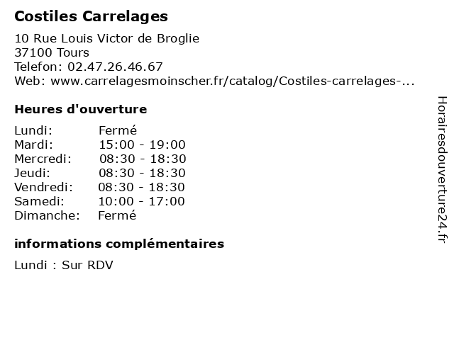 | Lundi | Fermé |