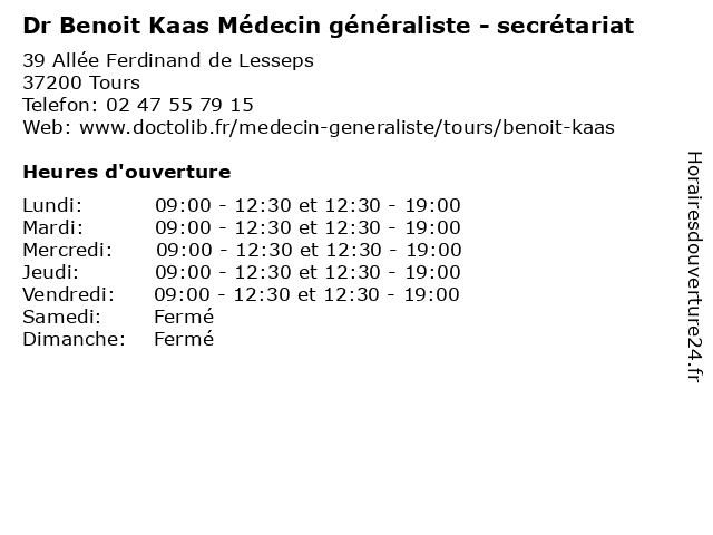 | Lundi | 09:00-12:30 et 12:30-19:00 |