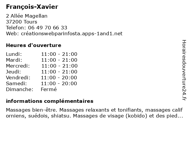 | Samedi | 11:00-20:00 |