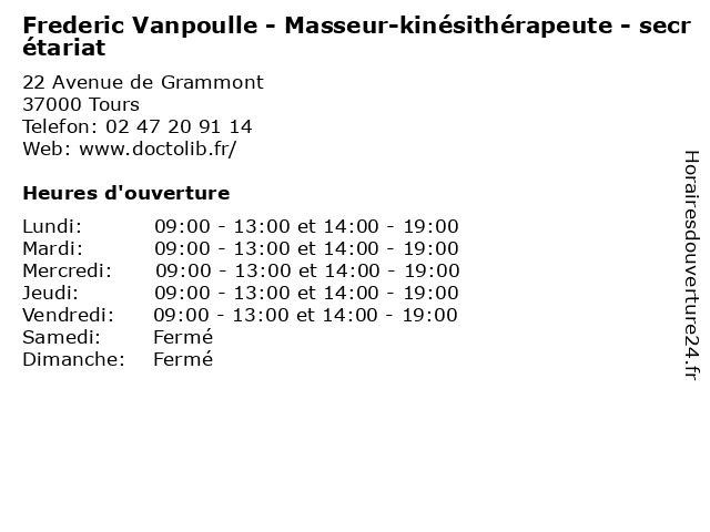 | Mardi | 09:00-13:00 et 14:00-19:00 |