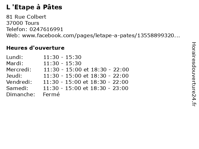 | Samedi | 11:30-15:00 et 18:30-23:00 |