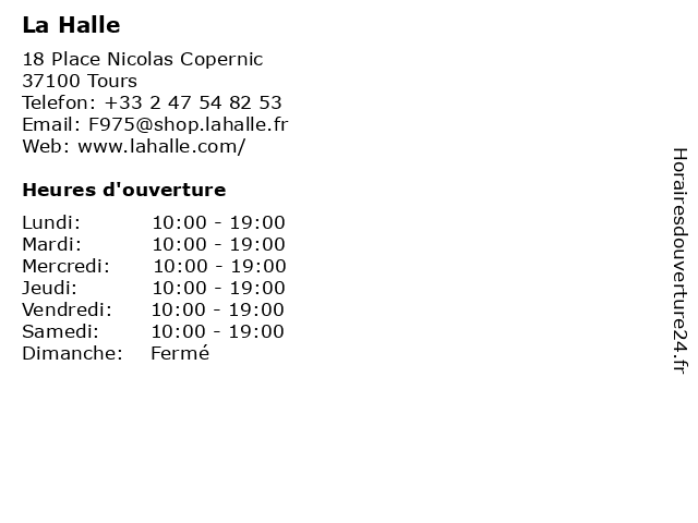 | Lundi | 10:00-19:00 |