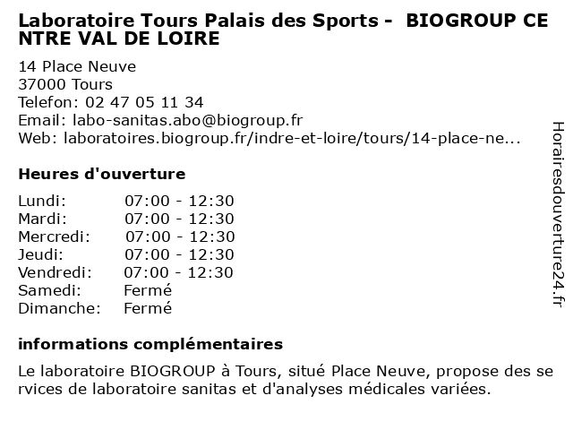 Termes de recherche pour Laboratoire Tours Palais des Sports - BIOGROUP CENTRE VAL DE LOIRE:val, de, tours, loire, des, laboratoire, centre, palais, sports, biogroup, dépistages, laboratoire de diagnostic |