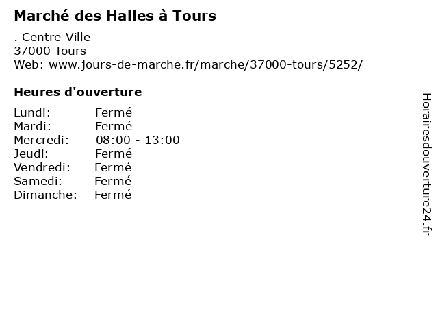 | Mercredi | 08:00-13:00 |