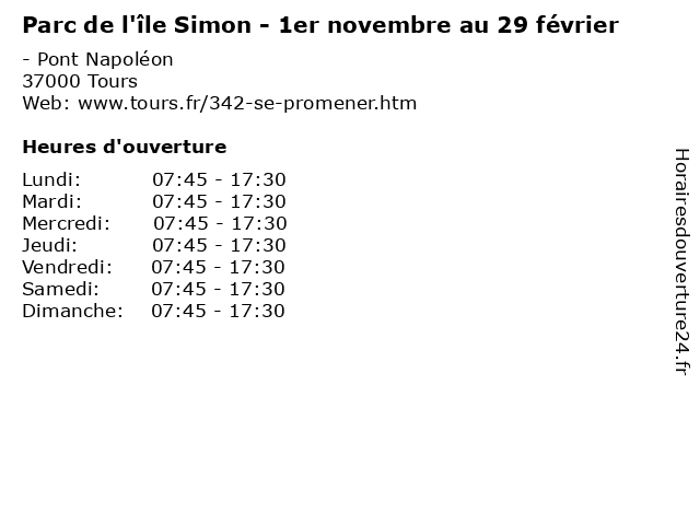 | Samedi | 07:45-17:30 |