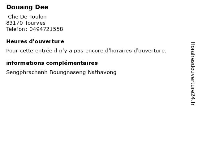 1 Douang Dee (Distance: 10,06 km) 1 route de Toulon, 83170 Tourves asiatique, dee, douang, plats, restaurant, restauration 2 My Thai (Distance: 59,85 km) 7 Rue Saint Jean, 83990 St Tropez chok, dee, developpement, my, restaurants, thai |