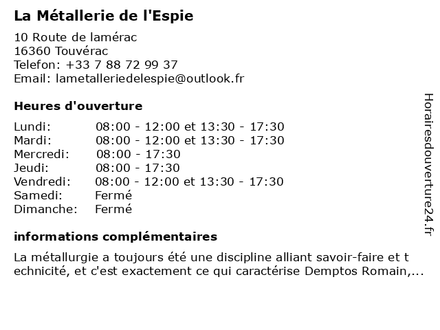Termes de recherche pour La Métallerie de l'Espie:la, de, métallerie, l'espie |