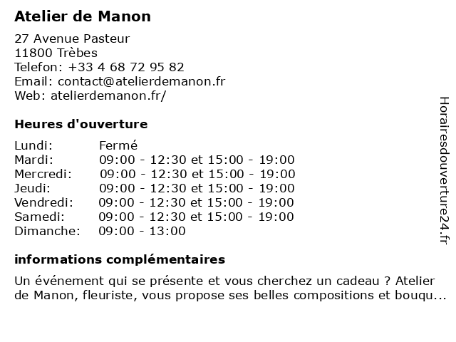 | Samedi | 09:00-12:30 et 15:00-19:00 |