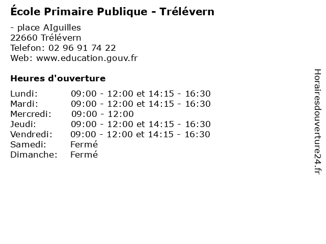 | Mardi | 09:00-12:00 et 14:15-16:30 |