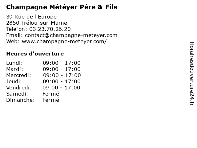 | Samedi | Fermé |