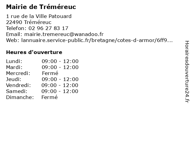 Termes de recherche pour Mairie de Tréméreuc:de, administration, mairie, tréméreuc, service public |