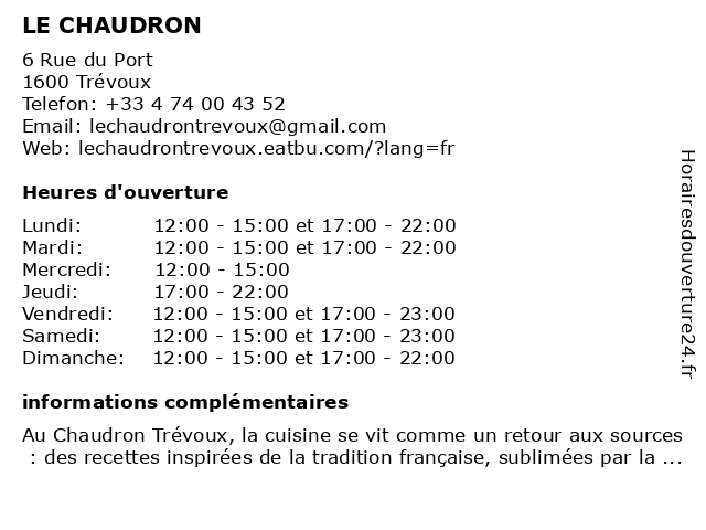 | Mardi | 12:00-15:00 et 17:00-22:00 |