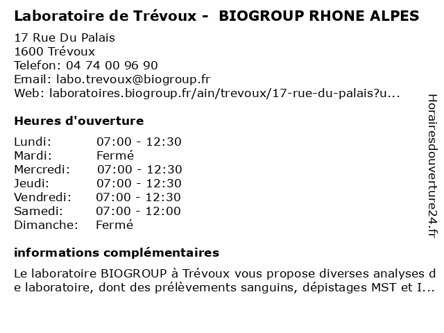 Termes de recherche pour Laboratoire de Trévoux - BIOGROUP RHONE ALPES:de, laboratoire, alpes, rhone, trevoux, biogroup, dépistages, laboratoire de diagnostic |