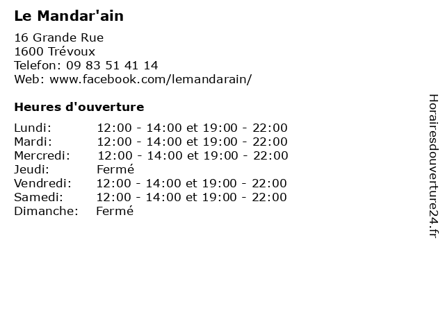 | Mardi | 12:00-14:00 et 19:00-22:00 |