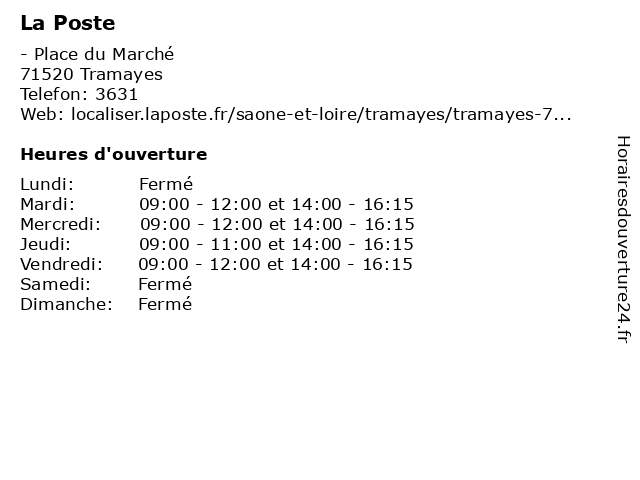 1 La Poste (Distance: 5,51 km) Le Bourg, 71520 Saint-Pierre-le-Vieux agence, assurance, banque, banque postale, bureau de poste, chronopost, colis, courrier, dps, expéditions internationales, la, point, postale, poste, relais, timbres, téléphonie, ups, western union 2 La Poste (Distance: 5,66 km) 5 rue de la Mairie, 71520 Trambly agence, assurance, banque, banque postale, bureau de poste, chronopost, colis, courrier, dps, expéditions internationales, la, point, postale, poste, relais, timbres, téléphonie, ups, western union 3 La Poste (Distance: 8,81 km) - Lotissement du Bourg, 71520 Matour agence, assurance, banque, banque postale, bureau de poste, chronopost, colis, courrier, dps, expéditions internationales, la, point, postale, poste, relais, timbres, téléphonie, ups, western union 4 La Poste (Distance: 9,01 km) - Rue Saint-Pierre, 71520 Saint-Pierre-le-Vieux agence, colis, courriers, expédition, la, postale, poste, relais 5 La Poste (Distance: 9,58 km) Le Bourg, 71250 Mazille agence, assurance, banque, banque postale, bureau de poste, chronopost, colis, courrier, dps, expéditions internationales, la, point, postale, poste, relais, timbres, téléphonie, ups, western union 6 La Poste (Distance: 10,72 km) Lieu dit le Bourg, 71570 Leynes agence, assurance, banque, banque postale, bureau de poste, chronopost, colis, courrier, dps, expéditions internationales, la, point, postale, poste, relais, timbres, téléphonie, ups, western union |