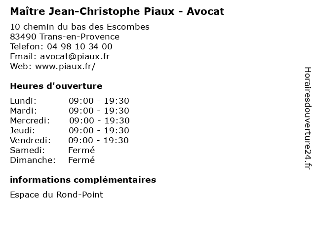 | Lundi | 09:00-19:30 |