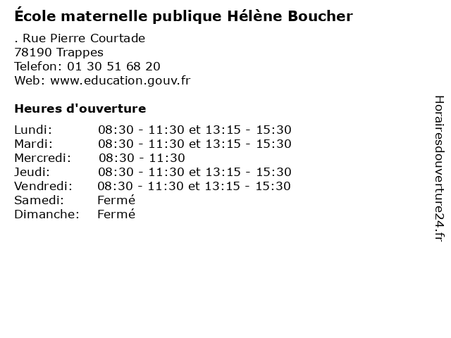 | Mardi | 08:30-11:30 et 13:15-15:30 |