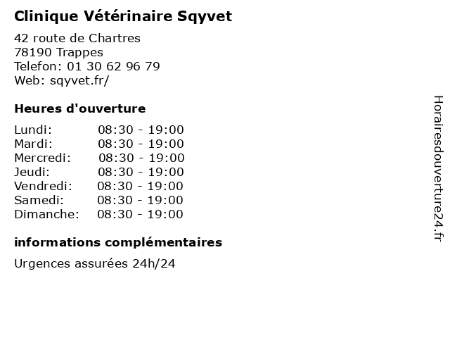 1 Clinique Vétérinaire la Clef Saint Pierre - Elancourt - Sevetys (Distance: 2,69 km) 2 Bis Rue de Luxembourg, 78990 Élancourt clef, clinique, elancourt, la, pierre, saint, sevetys, vétérinaire 2 Clinique vétérinaire de Montigny-le-Bretonneux - Sevetys (Distance: 5,22 km) 97 Avenue Joseph Kessel, 78180 Montigny-le-Bretonneux bretonneux, clinique, de, le, montigny, sevetys, vétérinaire 3 Cabinet médico-chirurgical Vétérinaire des Acacias (Distance: 5,95 km) 31 Avenue du Bois, 78340 Les Clayes-sous-Bois acacias, cabinet, chirurgical, des, médico, vétérinaire 4 Clinique vétérinaire Les Sablons (Distance: 6,12 km) 112 Rue Claude Chappe, 78370 Plaisir chiens, chirurgie, clinique, furets, lapin, les, maladies, sablons, soins, vaccins, vétérinaire 5 Clinique Vétérinaire HOPia (Distance: 6,21 km) 14 Boulevard des Chênes, 78280 Guyancourt clinique, hopia, vétérinaire 6 Clinique Vétérinaire du Val de Gally (Distance: 6,66 km) 19 avenue des Clayes, 78450 Villepreux chat, chien, clinique, de, du, gally, nac, val, vétérinaire |