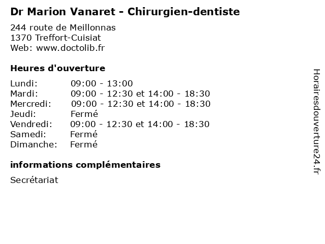 | Mardi | 09:00-12:30 et 14:00-18:30 |