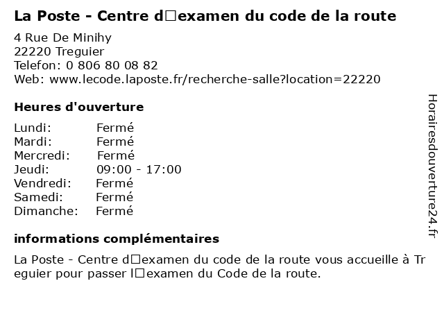 Termes de recherche pour La Poste - Centre d’examen du code de la route:poste, la, du, de, route, centre, code, d’examen, centre d'évaluation scolaire, école technique |