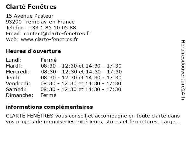 | Samedi | 08:30-12:30 et 14:30-17:30 |