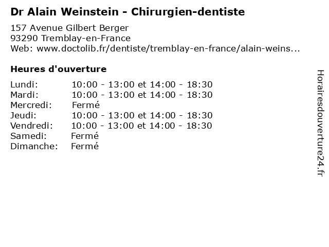 | Lundi | 10:00-13:00 et 14:00-18:30 |