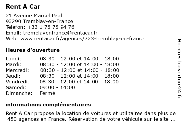 1 Rent A Car (Distance: 9,94 km) 67-69 Avenue de Rosny, 93250 Villemomble agence de location de véhicules, aller simple, car, location d'utilitaires, location de voitures, location de véhicules, rent, voiture sans permis 2 Rent A Car (Distance: 11,05 km) Rue de la Sucrerie, 95380 Villeron agence de location de véhicules, aller simple, car, location d'utilitaires, location de voitures, location de véhicules, rent, voiture sans permis 3 Rent A Car (Distance: 14,58 km) 77 Boulevard de Friedberg, 94350 Villiers-sur-Marne agence de location de véhicules, aller simple, car, location d'utilitaires, location de voitures, location de véhicules, rent, voiture sans permis 4 Rent A Car (Distance: 15,26 km) n/a Aéroport Roland Garros, 97438 Saint Denis car, location voitures, rent, utilitaires. 5 Rent A Car (Distance: 17,29 km) 78 Boulevard Soult, 75012 Paris agence de location de véhicules, aller simple, car, location d'utilitaires, location de voitures, location de véhicules, rent, voiture sans permis 6 Rent A Car (Distance: 18,42 km) 18 Boulevard d'Ormesson, 95880 Enghien-les-Bains agence de location de véhicules, aller simple, car, location d'utilitaires, location de voitures, location de véhicules, rent, voiture sans permis |
