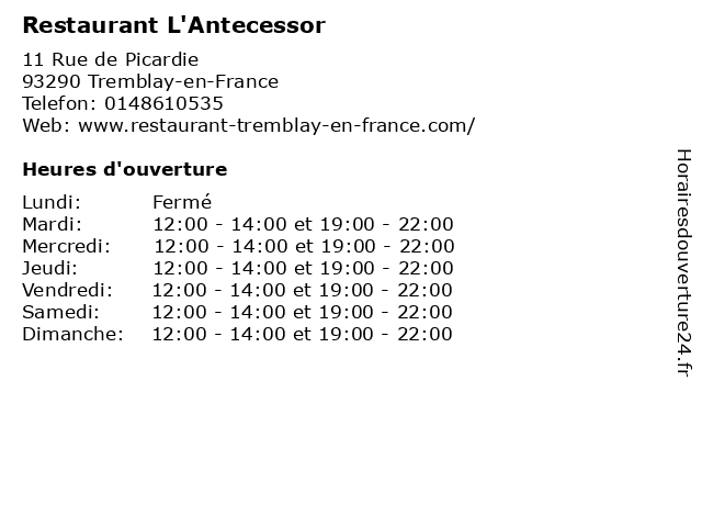 | Dimanche | 12:00-14:00 et 19:00-22:00 |