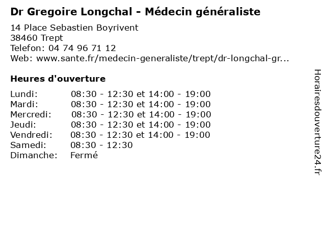 | Mercredi | 08:30-12:30 et 14:00-19:00 |