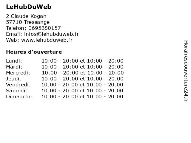 Lundi | 10:00-20:00 et 10:00-20:00 |