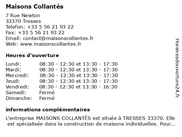 | Lundi | 08:30-12:30 et 13:30-17:30 |