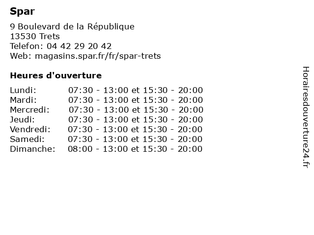 | Dimanche | 08:00-13:00 et 15:30-20:00 |