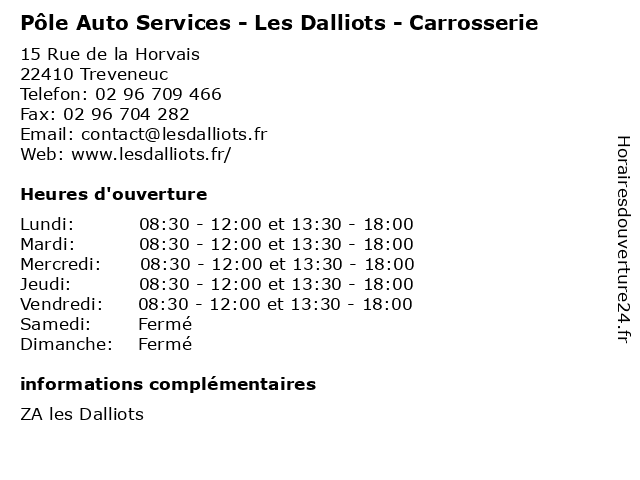 | Lundi | 08:30-12:00 et 13:30-18:00 |