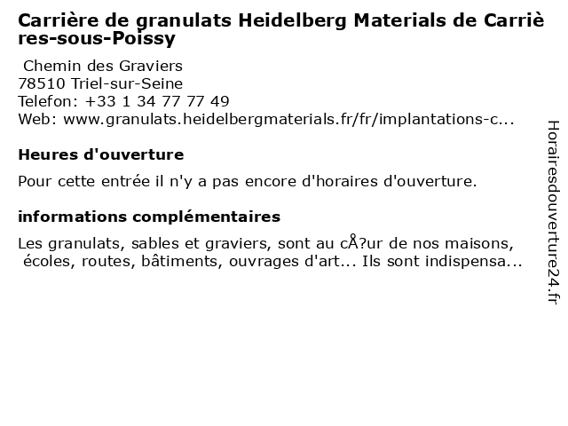 | Appeler Carrière de granulats Heidelberg Materials de Carrières-sous-Poissy | |
