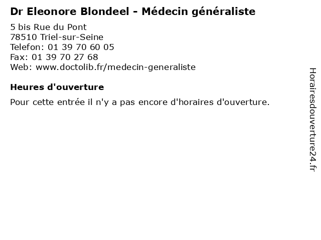 | Appeler Dr Eleonore Blondeel - Médecin généraliste | |
