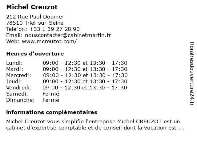 Lundi | 09:00-12:30 et 13:30-17:30 |