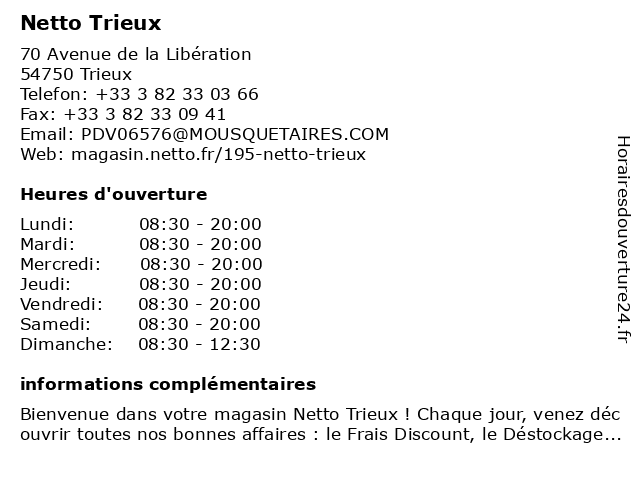 1 Netto Pont A Mousson (Distance: 47,75 km) 59 Avenue Général Patton, 54700 Pont-à-Mousson mousson, netto, pont |