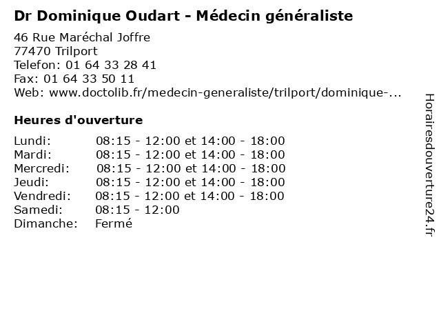 | Lundi | 08:15-12:00 et 14:00-18:00 |