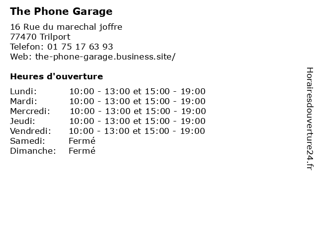 | Lundi | 10:00-13:00 et 15:00-19:00 |