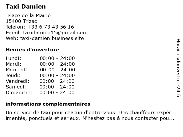 | Samedi | 00:00-24:00 |
