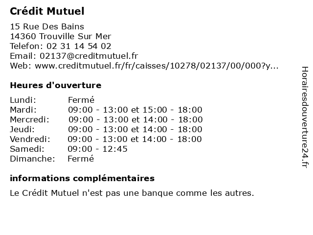 | Mardi | 09:00-13:00 et 15:00-18:00 |
