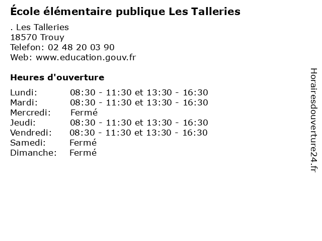 | Mardi | 08:30-11:30 et 13:30-16:30 |