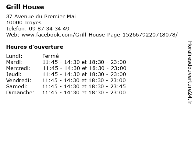 | Mardi | 11:45-14:30 et 18:30-23:00 |