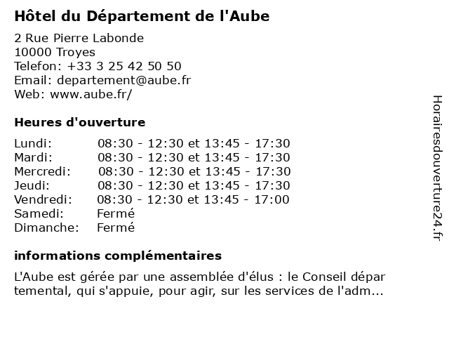 | Lundi | 08:30-12:30 et 13:45-17:30 |